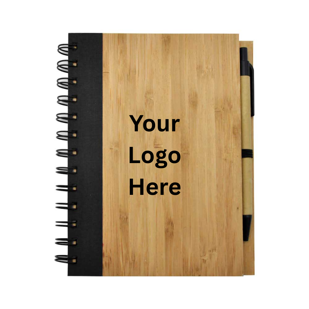 A sustainable bamboo notebook paired with a quality pen — designed for everyday writing, planning, and note-taking. The eco-friendly bamboo cover provides a natural and premium feel while protecting the inner pages. This notebook is ideal for professionals, students, and anyone looking for a stylish, sustainable stationery item. Perfect for corporate gifting, school supplies, event giveaways and green stationery collections.
