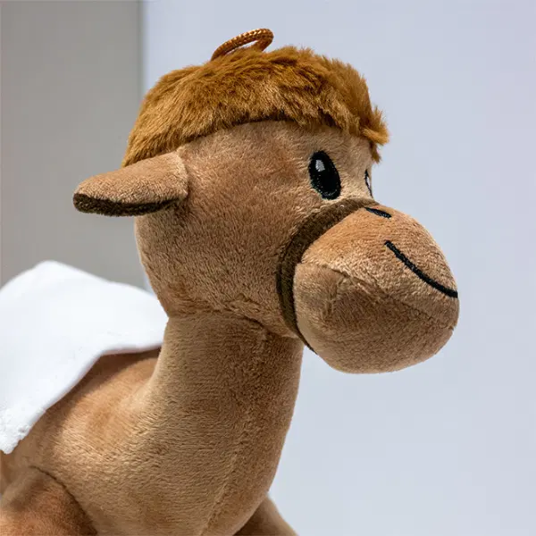 Soft camel plush toy, approx. 25 cm, with adorable details and cuddly feel. Great for kids, souvenirs, event giveaways and themed gifts. Available in UAE with delivery worldwide.