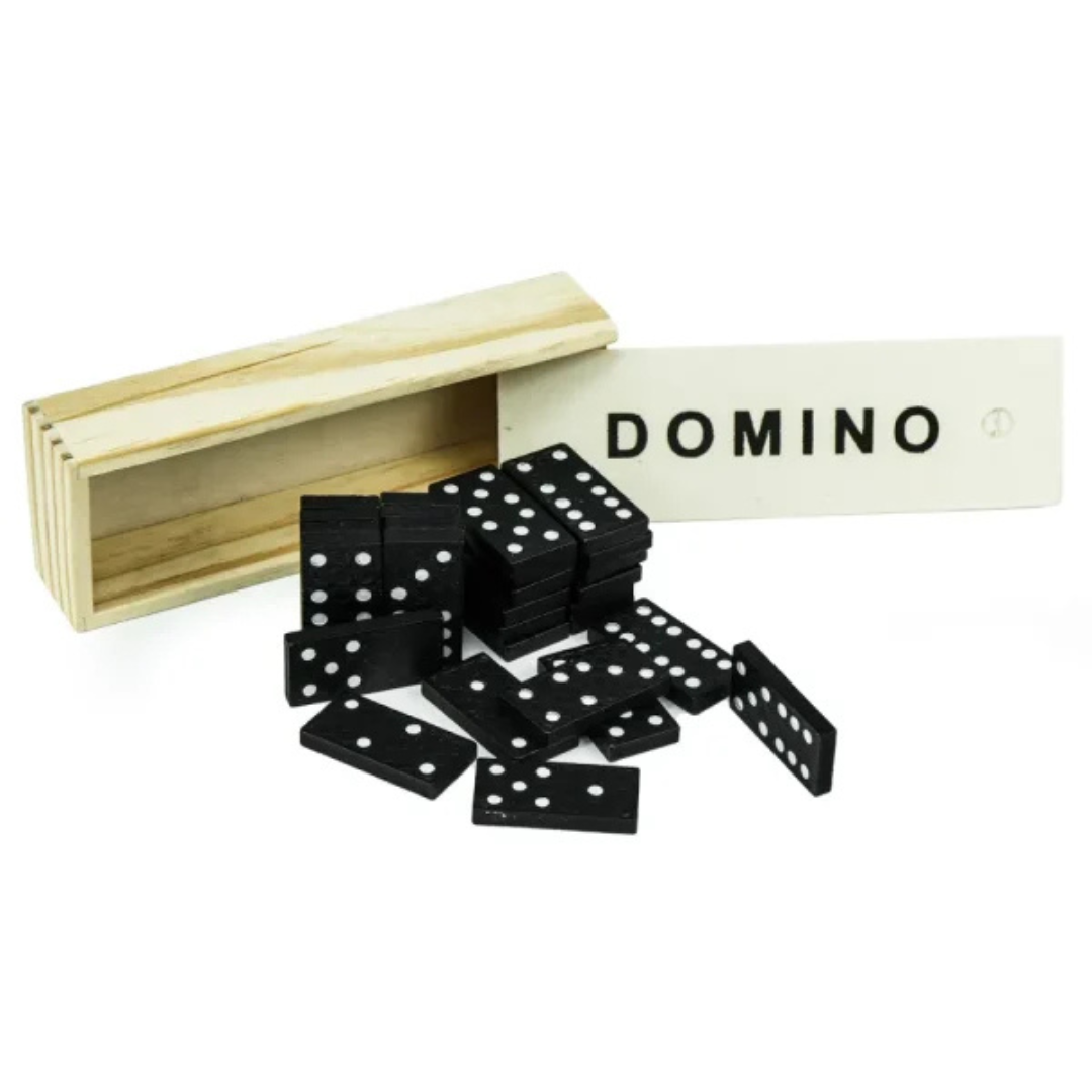 Classic domino game set with 28 black wooden pieces and a slide-open wooden box. Ideal for indoor play, events and gifts. Available in UAE with delivery worldwide.